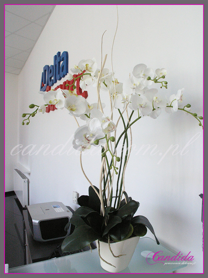 Dekoracja biur kwiatami sztucznymi. Dekoracja na recepcji, dekoracje w pokojach pracowników, dekoracja holi.